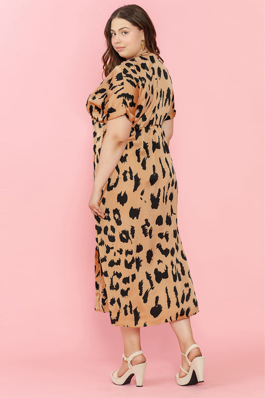 Khaki Leopard V Neck High Waist Buttoned Plus Maxi DressRegular price $36.86 USDRegular priceUnit price / per-