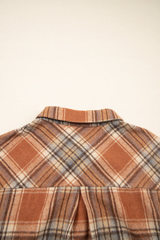 Brown Plaid Print Flap Pocket Buttoned Plus Size Shacket