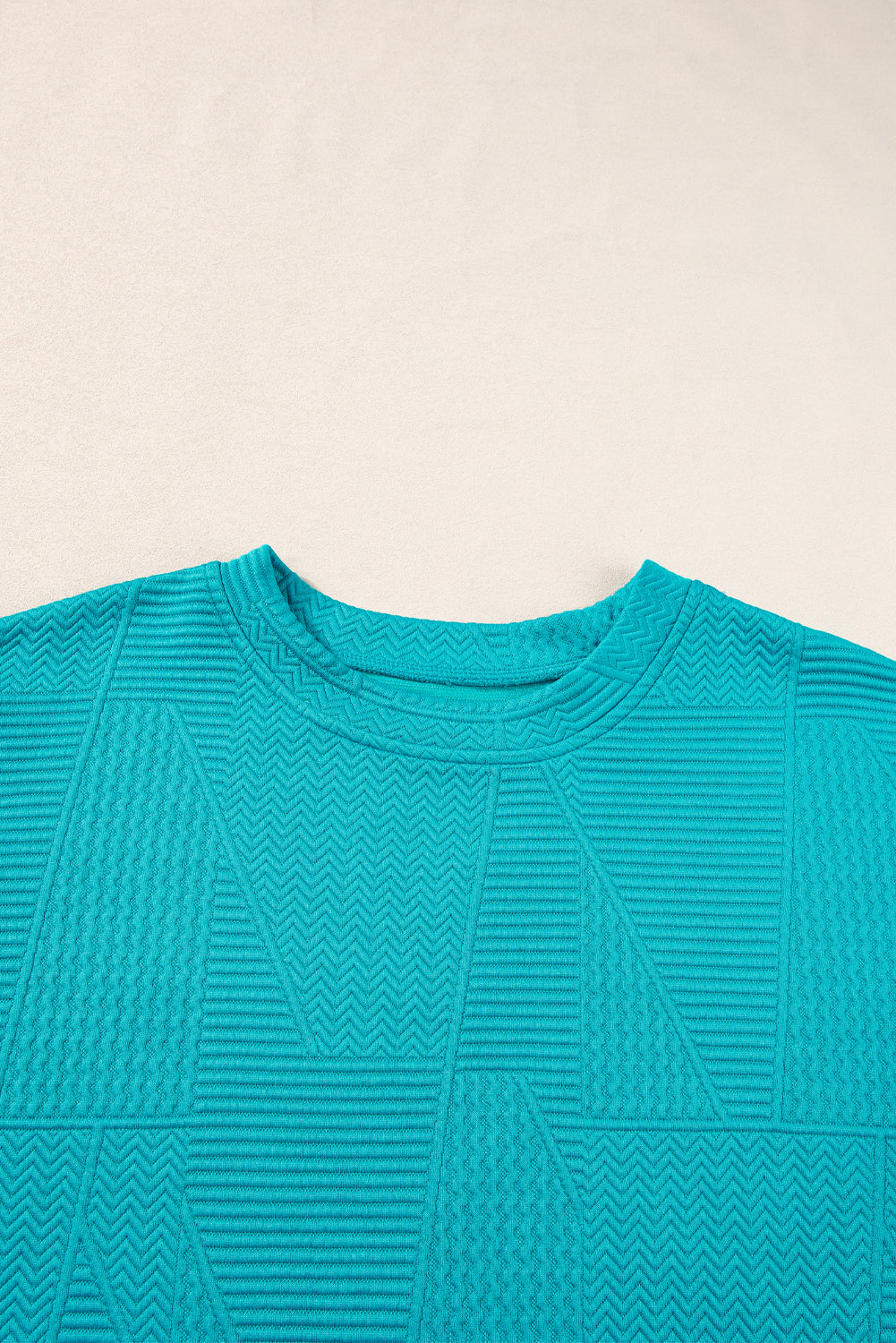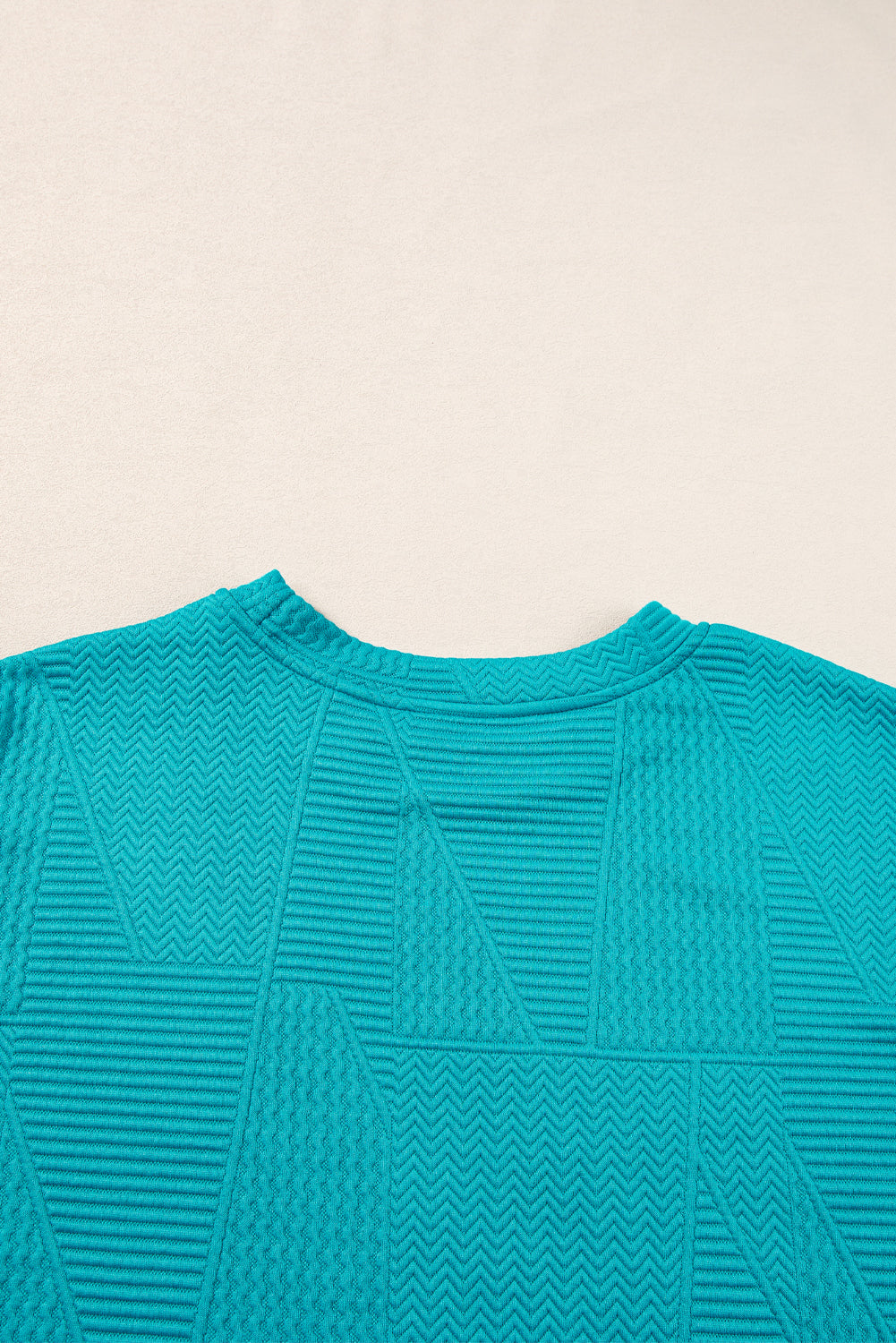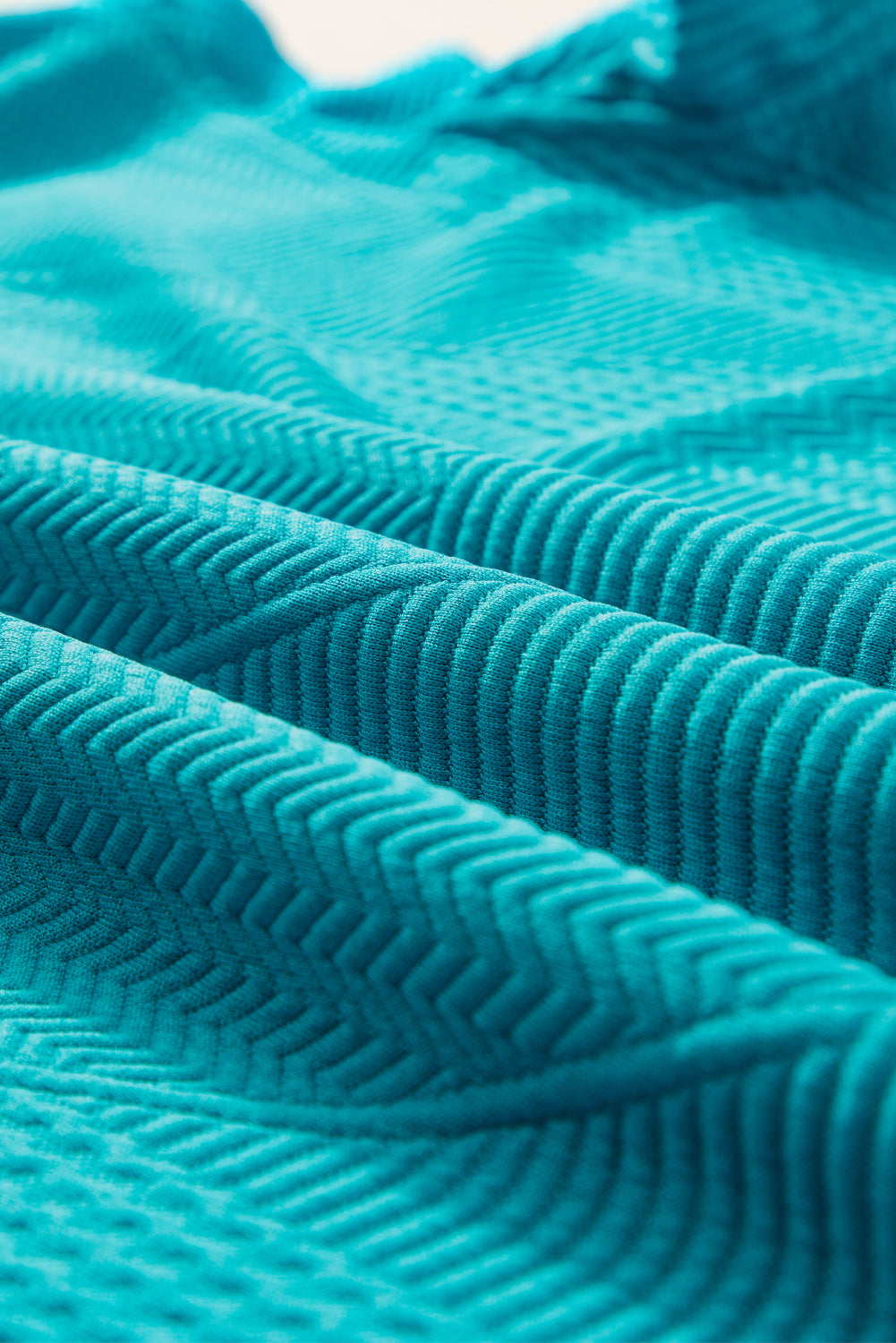 Dark Green Textured Ruffle Split Top and Drawstring Shorts