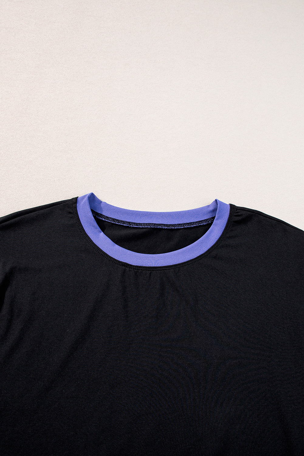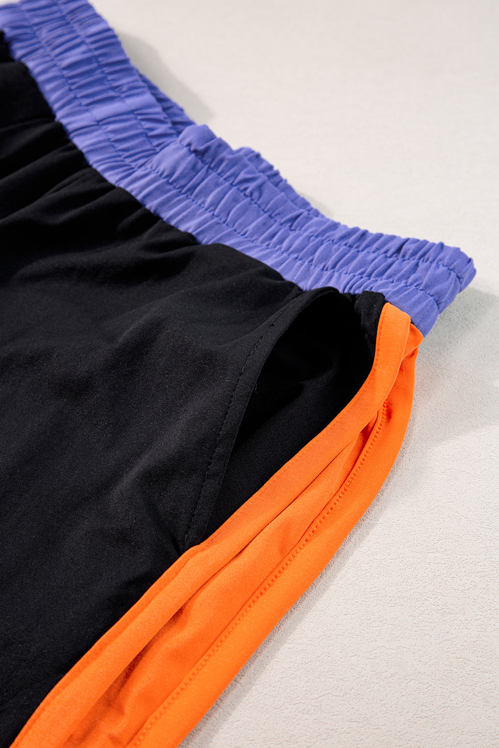 Strawberry Pink Color Block Detail Casual Two-piece Set